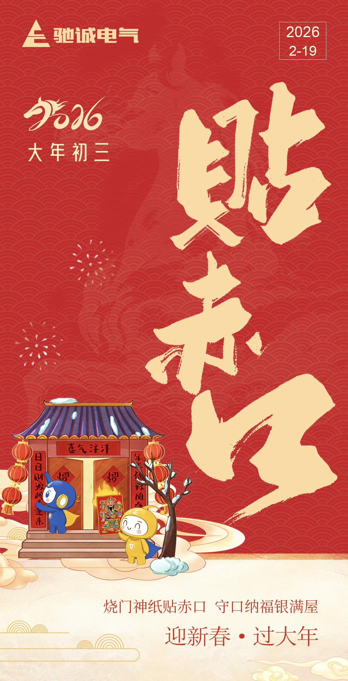 大年初三,福满庭堂,驰诚电气祝您阖家安康,自在顺遂!