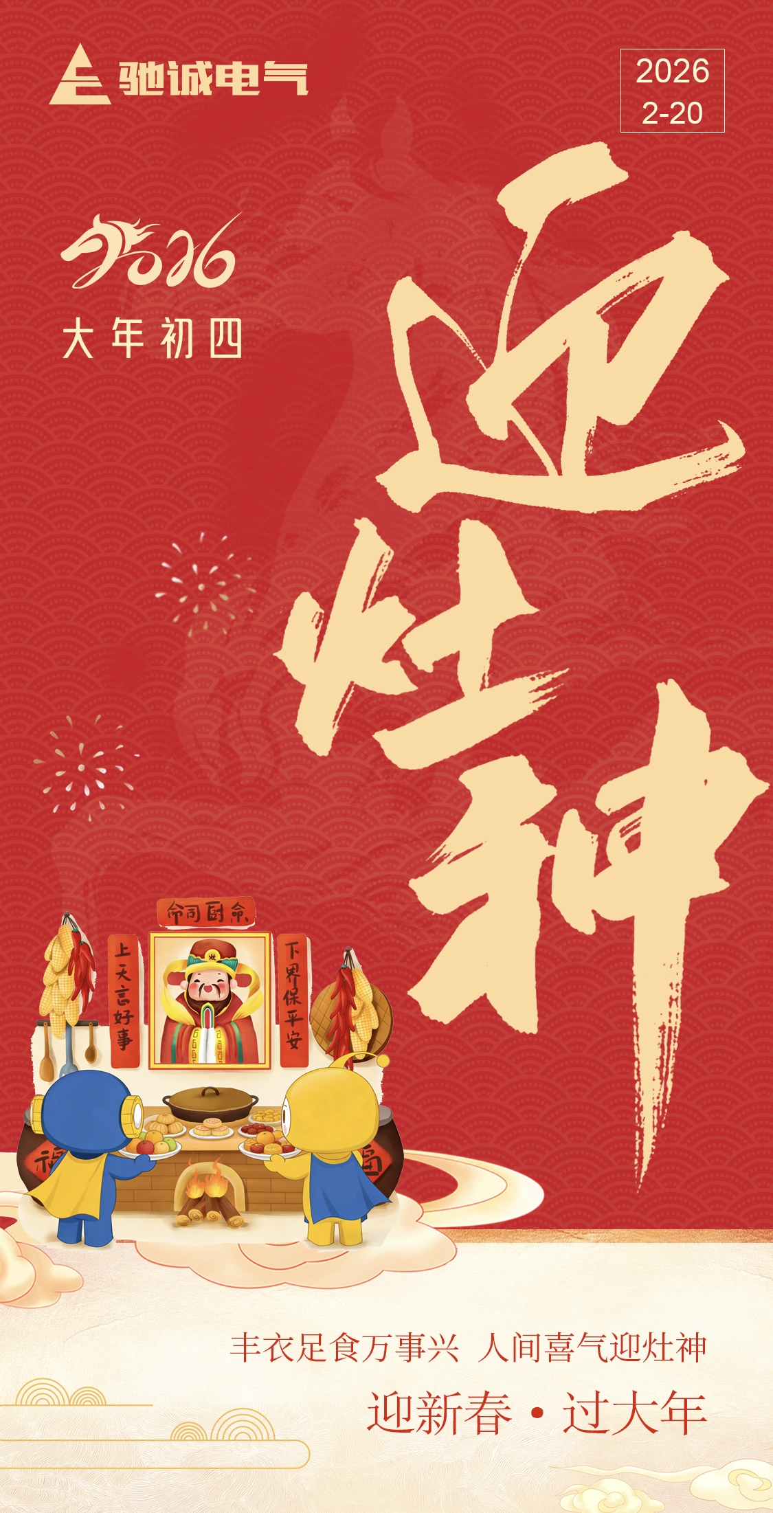 大年初四,恭迎灶神,驰诚电气祝您烟火素常,平安顺遂!