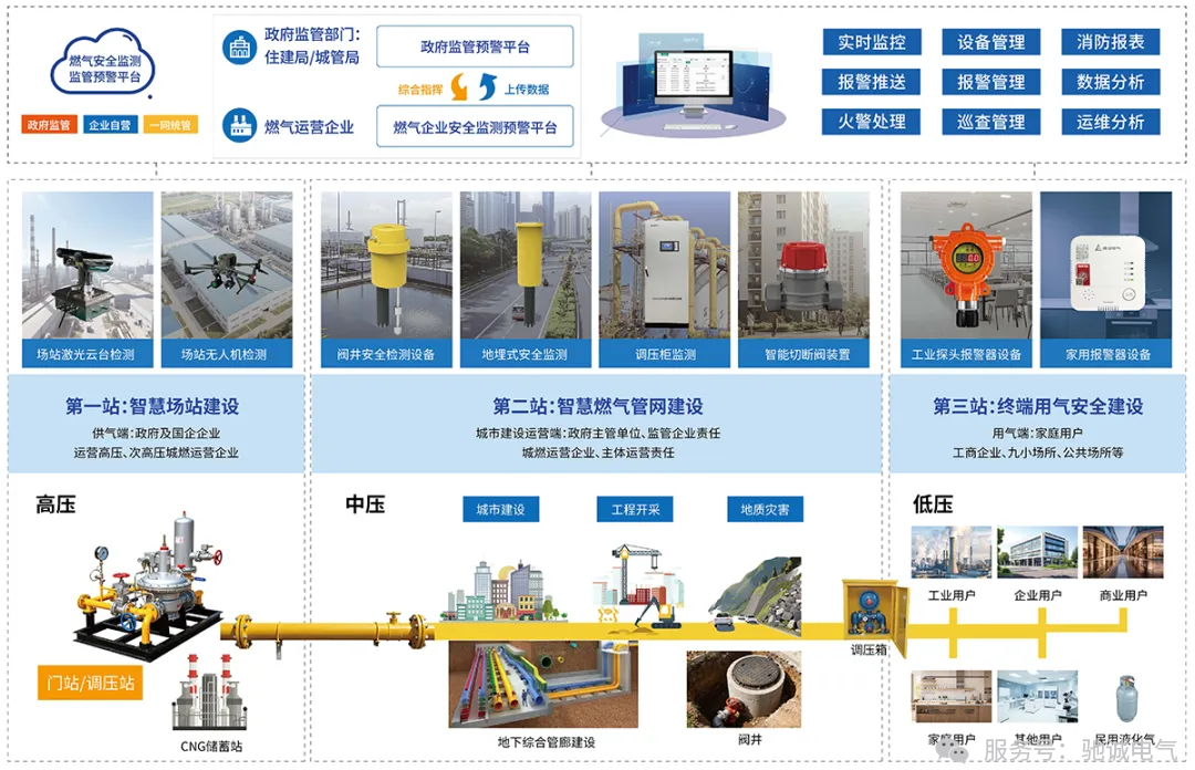 驰诚电气深刻洞察城市生命线安全对于城市稳定运行与居民安居乐业的重大意义,精心打造了“空·天·地”一体化立体监测网络。该网络借助前沿的激光检测、无人机巡检以及地面传感器等多维度技术手段,实现从供气源头到终端用气环节的全流程覆盖,以创新科技织就了一张严密且高效的城市安全防护网,助力城市发展向韧性、安全、智慧、脉动方向迈进!